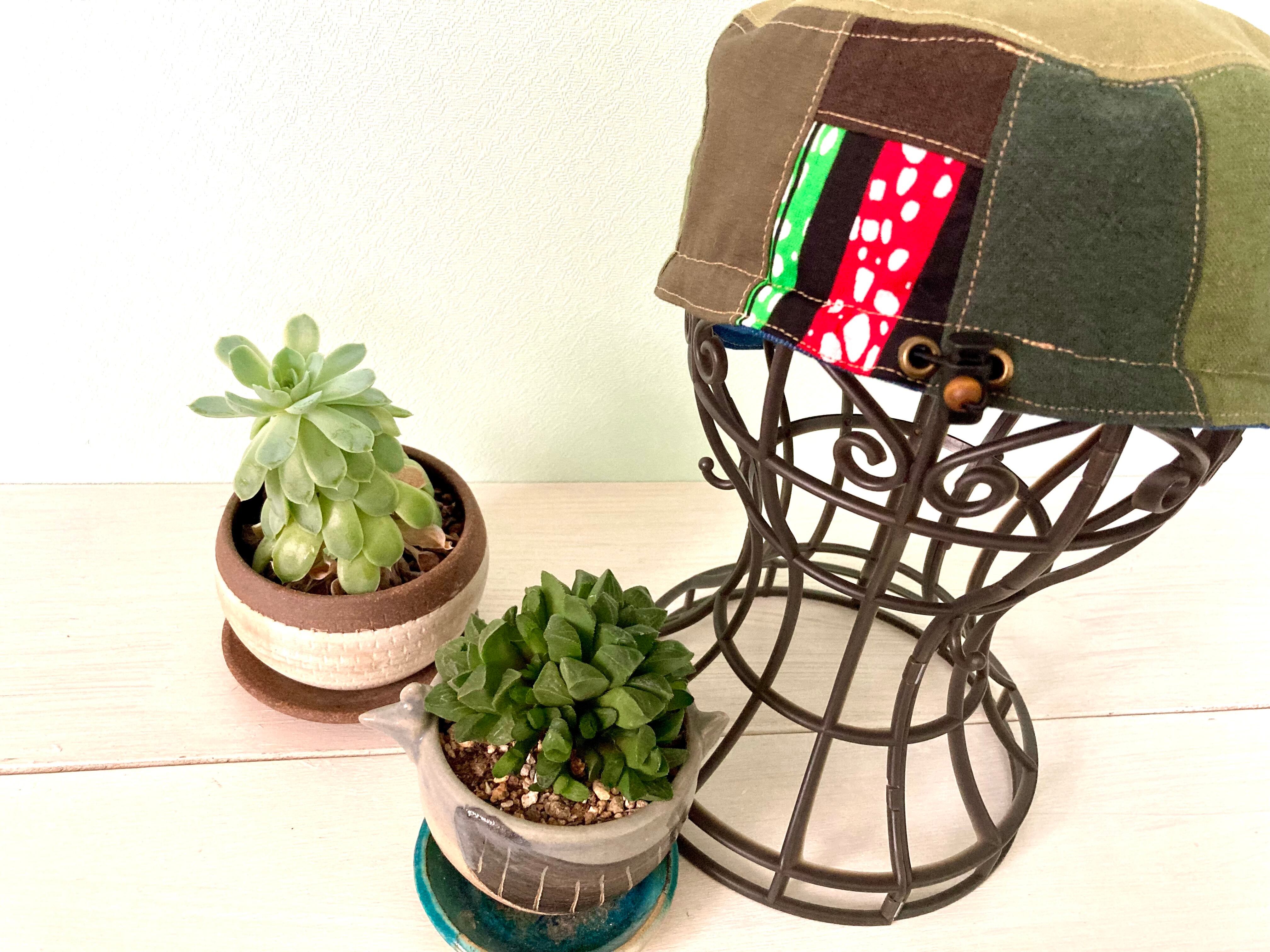 大人帽子として作りましたが、お子様でもコードストッパーで大きさ調整して被っていただく事も出来ます。