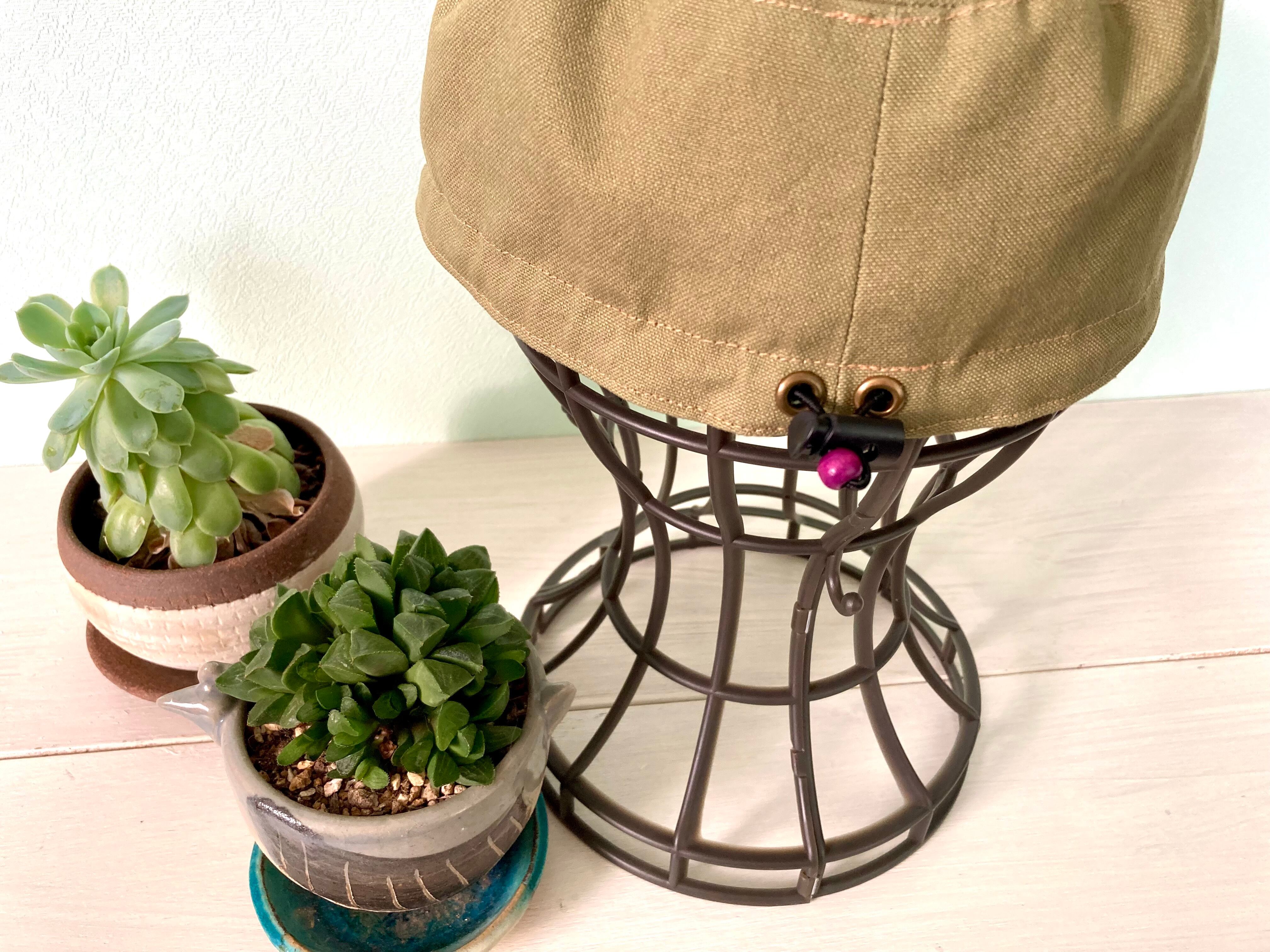 大人帽子として作りましたが、お子様でもコードストッパーで大きさ調整して被っていただく事も出来ます。