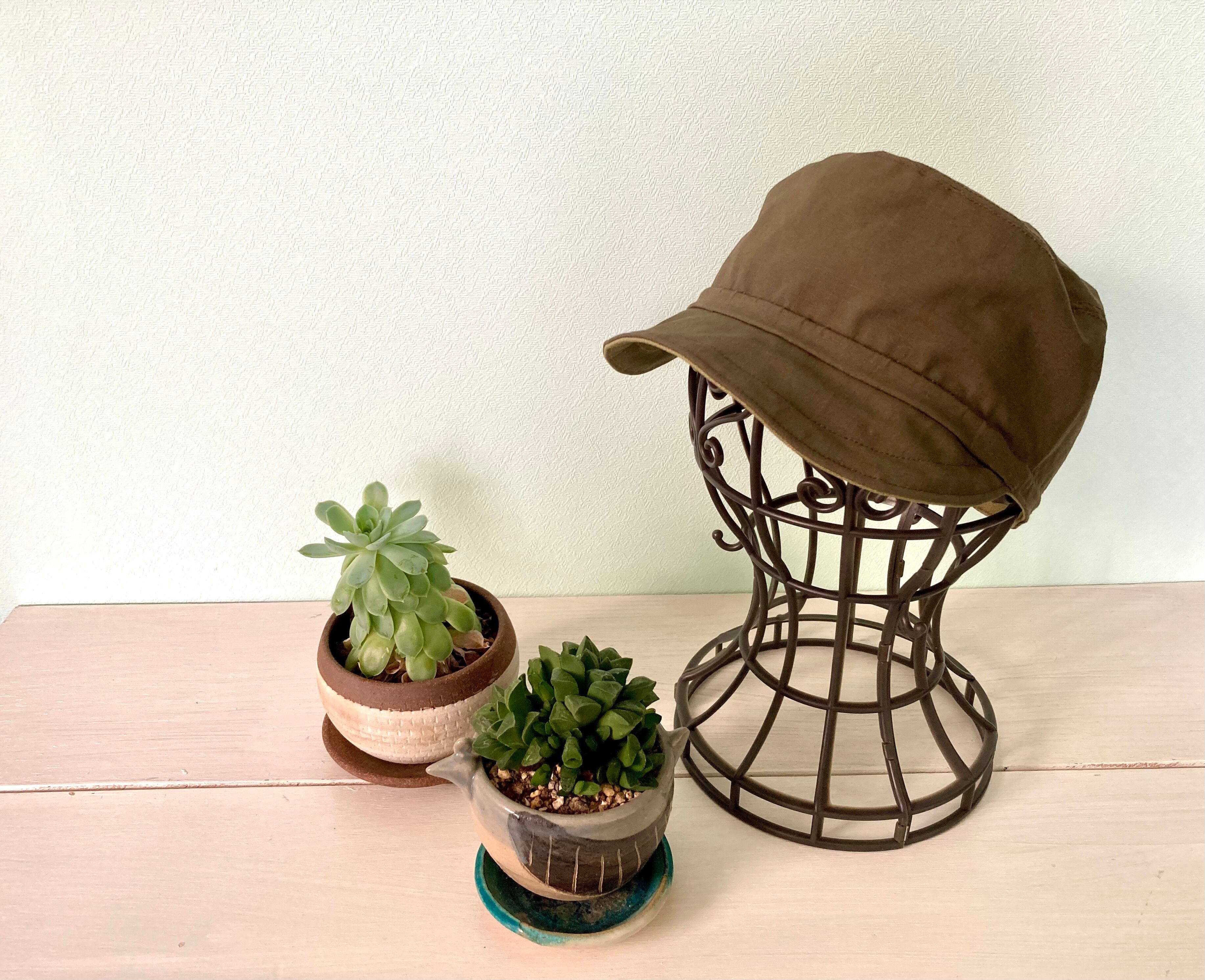 薄手のカーキ色の帆布でワークキャップを作りました。