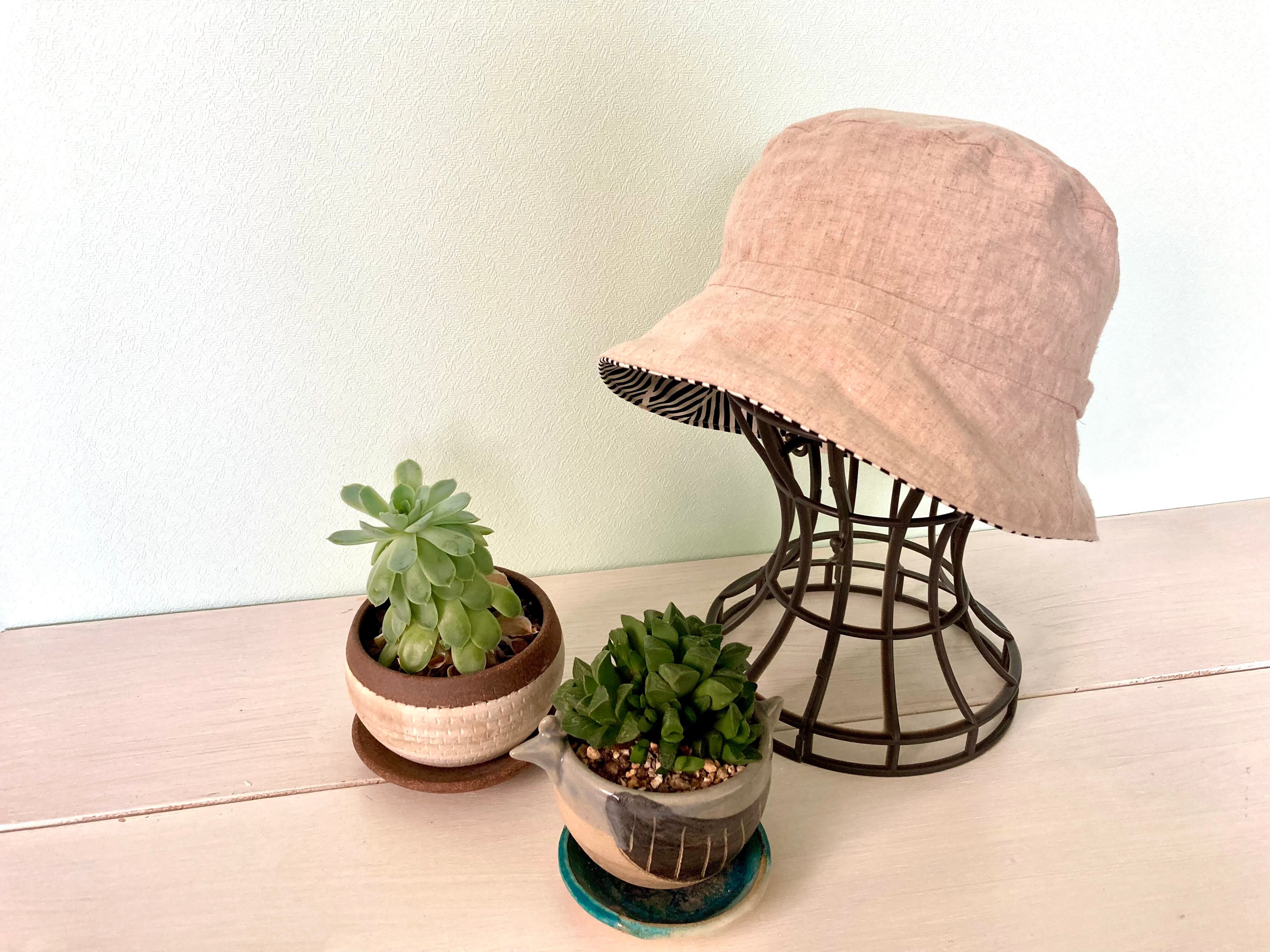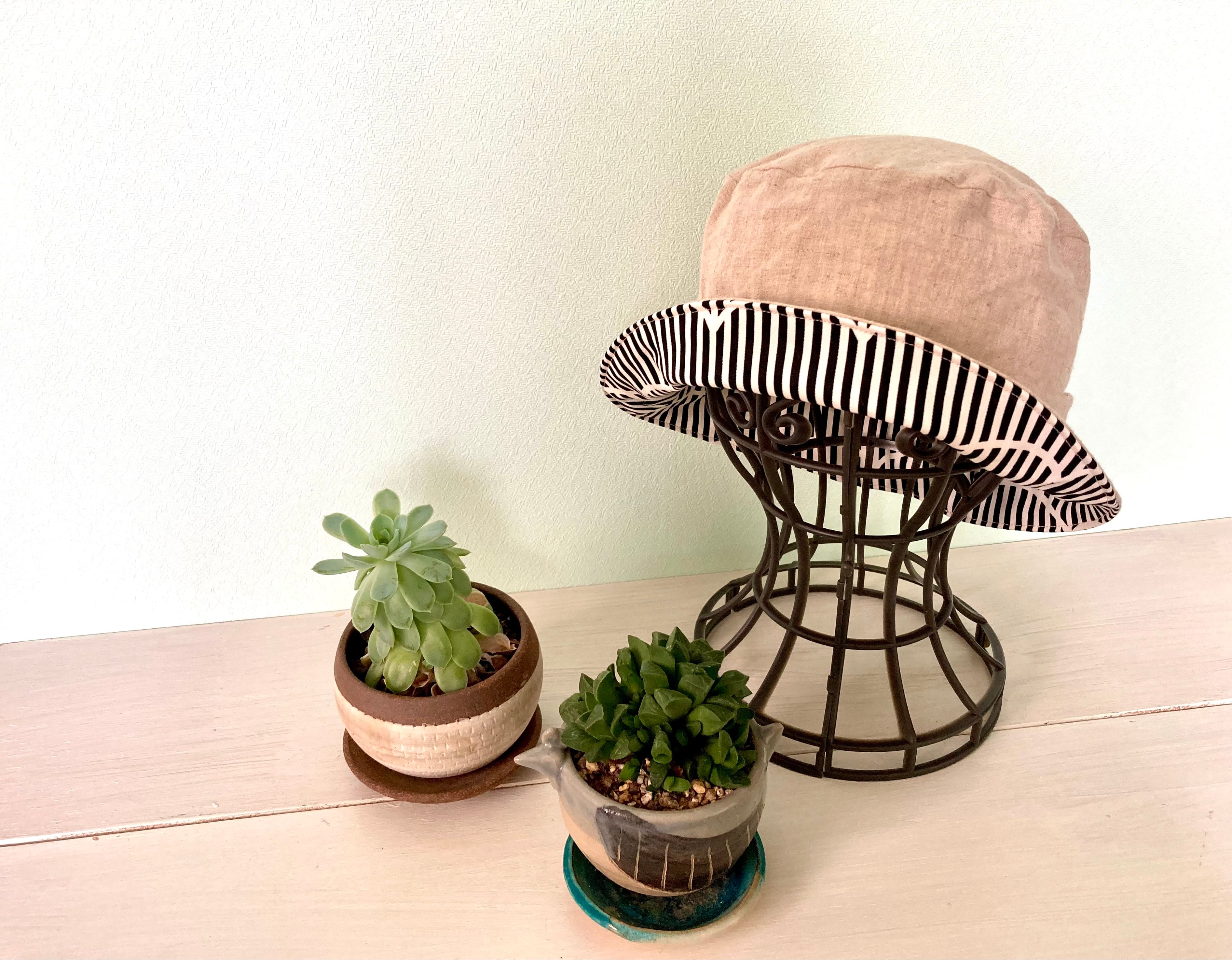頭まわり〜60cm、高さ8.5cm、ツバ6cm