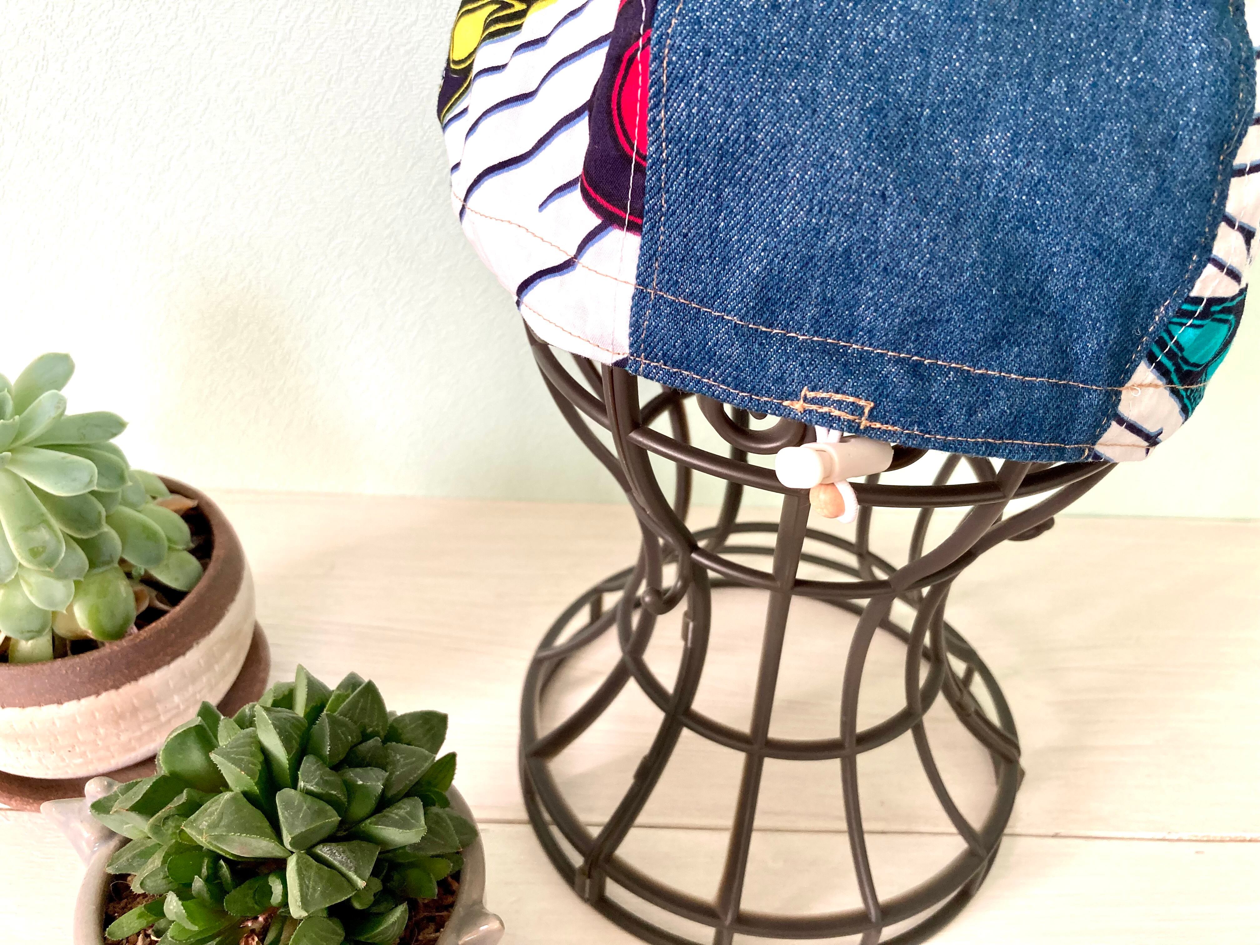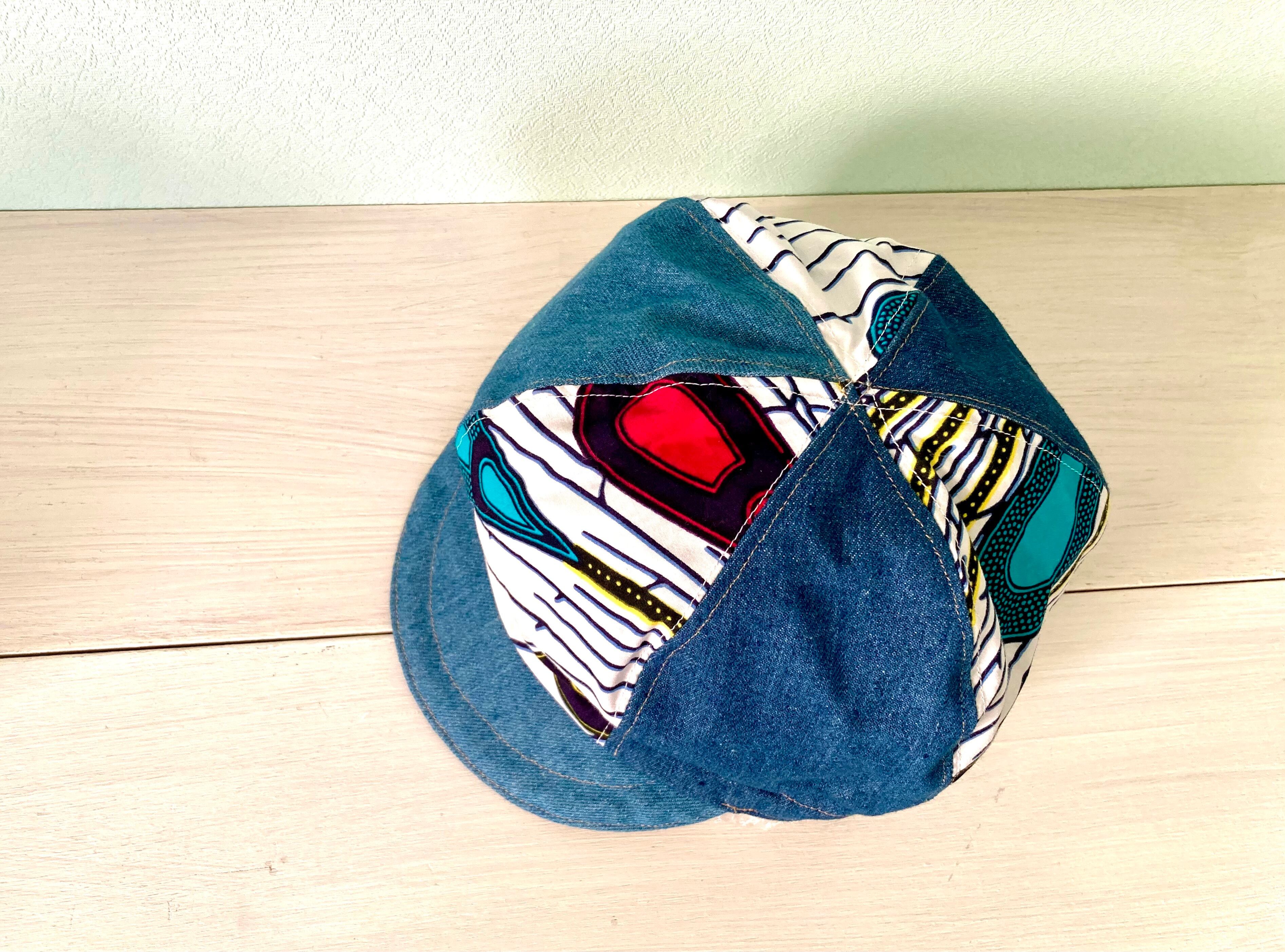 アフリカン生地に合わせやすいデニムベースで爽やかな帽子が出来ました!